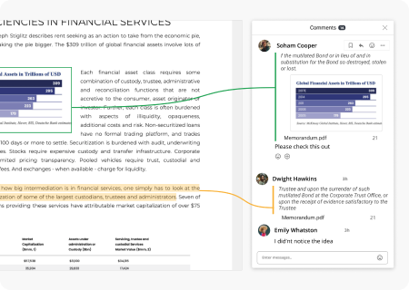 Keep track of your meeting by commenting. Easily track back to the point when the subject was discussed.